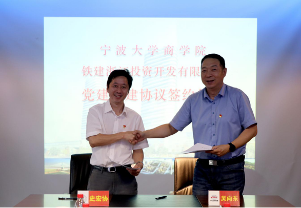 6月27日下午,我院党委书记史宏协、党委副书记韩雯琛、金融系党支部书记王朝晖、党务秘书吕承烨一行出访中国铁建中铁十五局集团铁建浙江投资开发有限公司,与铁建浙投党委举行了结对共建签约仪式,并签订党建共建协议。签约仪式由铁建浙投党委书记吴向东主持。